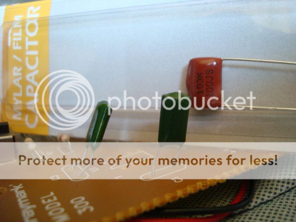 Ivan I have a question about replacing the sweep caps on the JH-1 back to .01uf value. I got a two pictures I'm going to post on here. One is of two smaller green .01uf caps still on the board I can use. The other one in the pack next to it is .01uf a little larger brown cap for 100v. The little green ones are 1/4 watt rated. That is all the info I have. Which of the two should I use? I also will post a shot of the JH-1 board with the green cap it comes with of higher uf value.