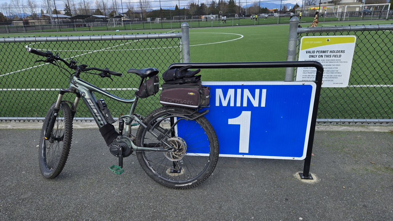 On the way back, heading down the hill on the South end of the Alex Fraser I misjudged a sharp corner and smashed my left elbow into the solid metal railing at 35kmh.
