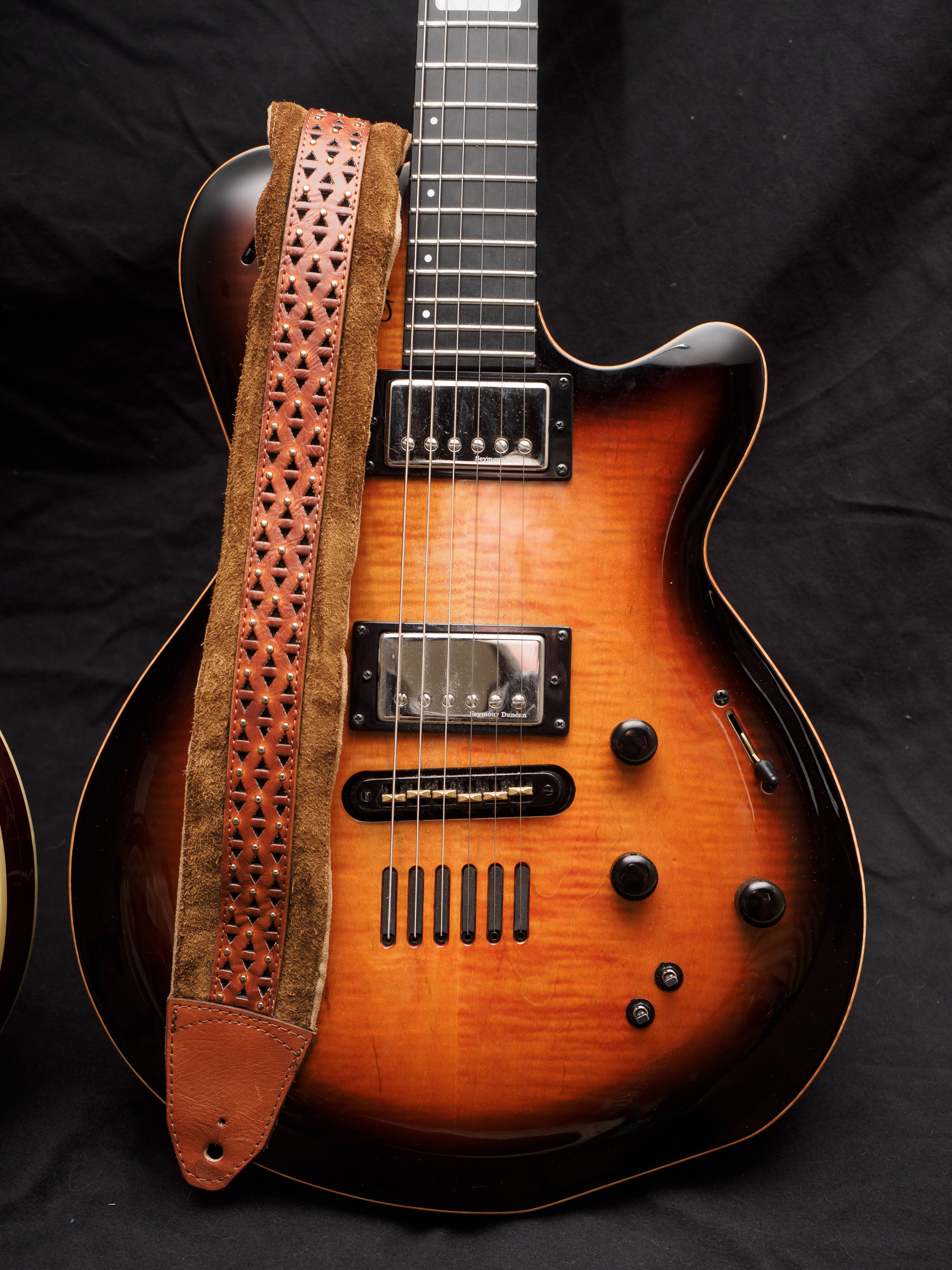 BRAVADO & HERO - Originally I was only going to buy HERO (far right), at the same time Brad ran a TTR donation to keep the lights on here, so fittingly I help with the TTR drive with BRAVADO. Brad even when the extra mile and not only helped complete my collection, but donated the purchase so we can all keep in touch here! YOU DA MAN Brad! HERO was originally less reddish, but he tanned it more to match the color of my SG. BRAVADO is securing my Fender Showmaster.
