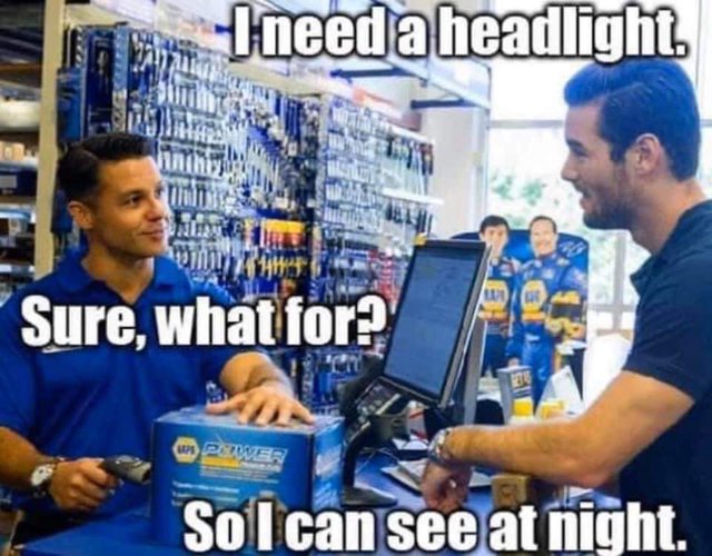 I worked behind a Parts Counter from 1980-2020 when I retired. I never asked a stupid question like this.... but while waiting to be served at an auto store.... I have heard it asked.