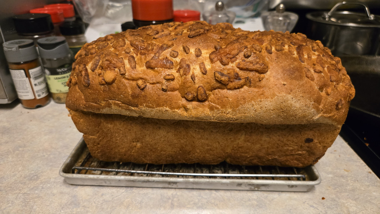 This one just out of the oven...I have tried to make sandwich bread. Got sourdough, so gotta use it for something. What I've made has been decent. Just haven't found a recipe I've gone nuts over... yet.