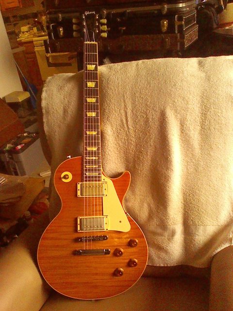 I bought this Gibson years after those others, but it too was a mailorder. It's an '04 Tradtitional Plus. Very bright natural voice; its stock BurstBuckers sounded thin and impossibly harsh. Dimarzio AT-1 at the bridge and an Air Norton (wired parallel) in neck position fattened it up & filled in the mids.